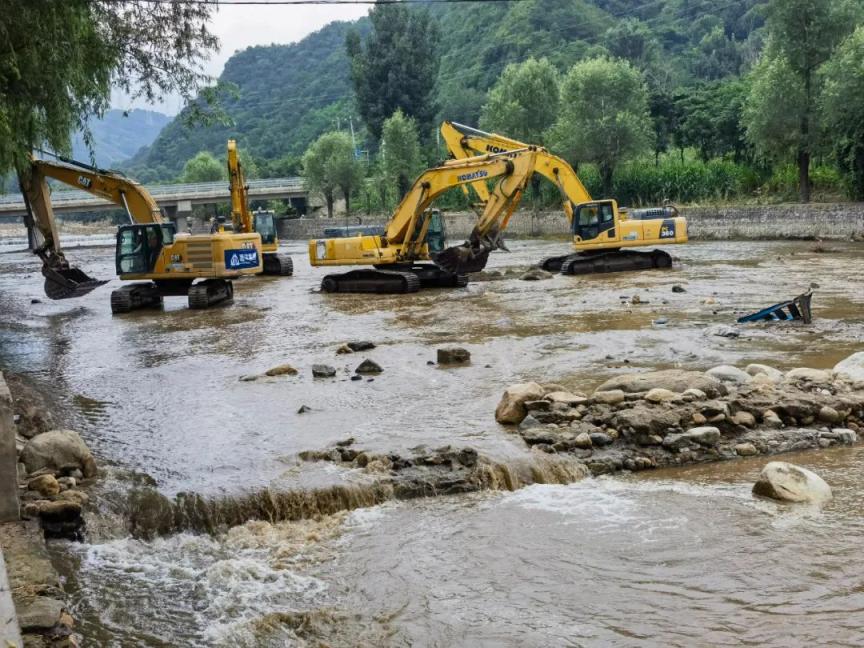 8月2日下午,记者在琉璃河抢险现场看到,多台挖掘机、推土机正在全速作业,清理淤泥、垃圾等掌牛宝,对阻塞河道的大块阻碍物进行机械破碎,清理物经分类后转运至指定场所。